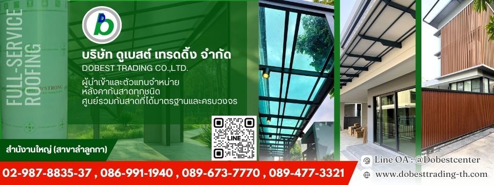 จำหน่ายวัสดุหลังคา กันสาดทุกชนิด บริษัทฯ ดำเนินธุรกิจด้านวัสดุแผ่นหลังคา กันสาด เป็นผู้จำหน่ายผลิตภัณฑ์นำเข้า แผ่นโพลี่คาร์บอเนต ยี่ห้อ ดี สตรอง (D’Strong) DB อลูมิเนียมลายไม้ , DB WAVE โพลี่คาร์บอเนต แบบลอน , แผ่น APVC - UPVC, อลูมิเนียมคอมโพสิต และเป็นตัวแทนจำหน่าย ดีไลท์ , โปรไลท์ , ไวนิล พลาสวู้ด และไวนิลท้องเรียบเนื้อแข็ง , ซิลิโคนยาแนวกันซึมและอุปกรณ์การติดตั้งหลังคา - กันสาด
