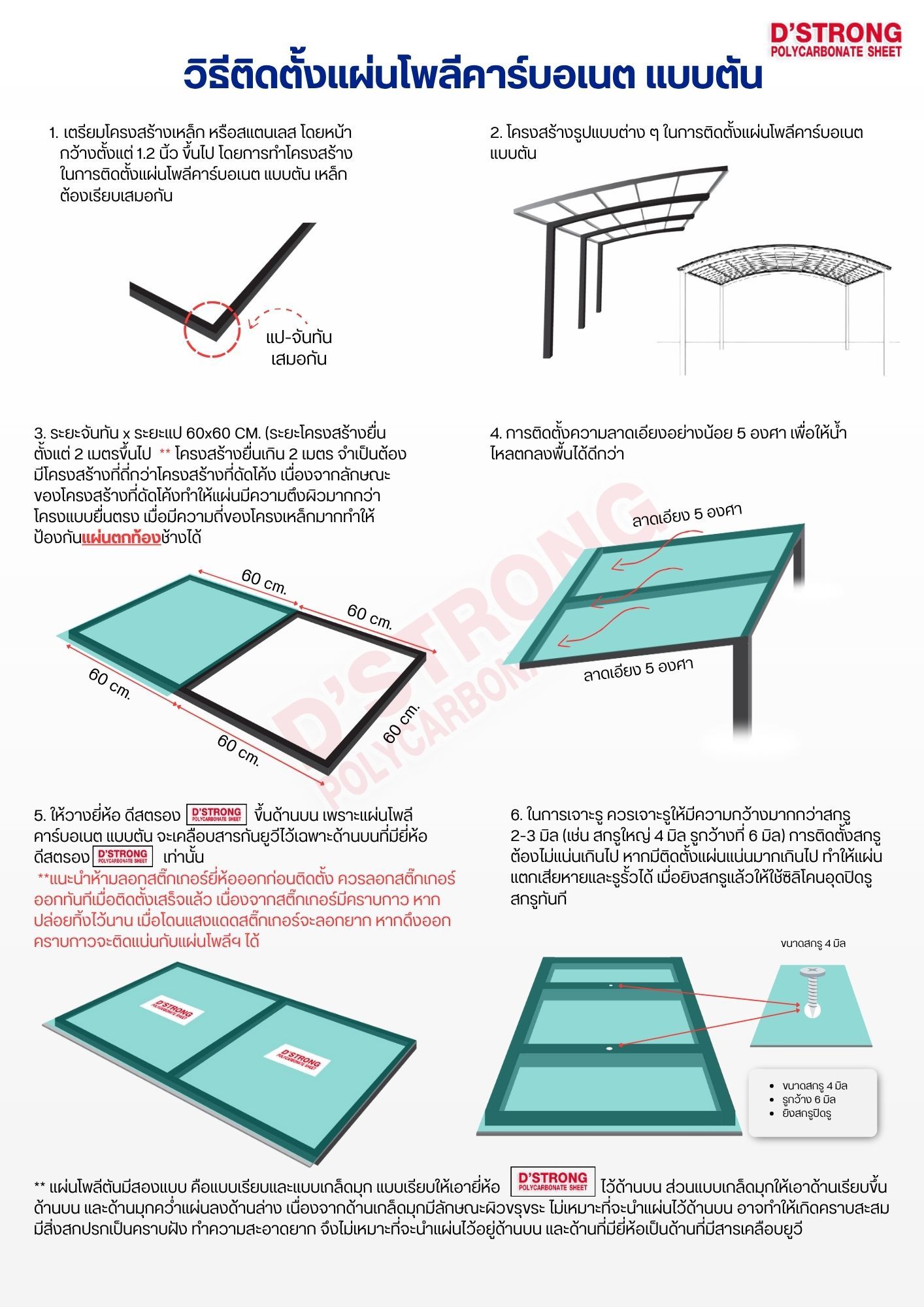 วิธีติดตั้งแผ่นโพลี่คาร์บอเนตแบบตัน