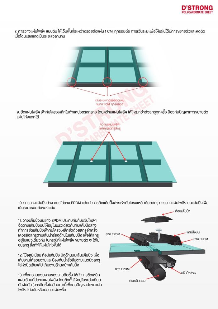 วิธีติดตั้งแผ่นโพลี่คาร์บอเนตแบบตัน